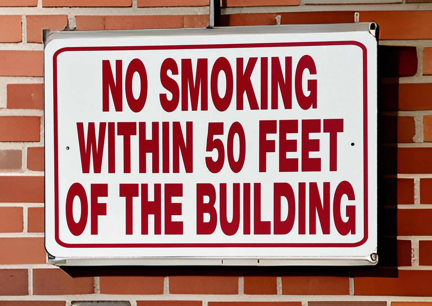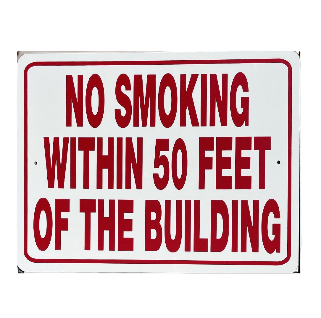 Keep people informed and aware with Noble Beasts Graphics 12 inch x 18 inch No Smoking Within 50ft of the Building aluminum sign. Ideal for both outdoor and indoor use, it’s designed to be durable, weather-resistant, and long-lasting.