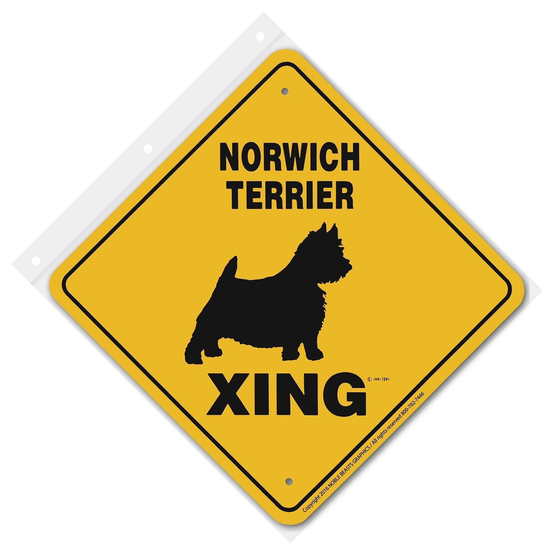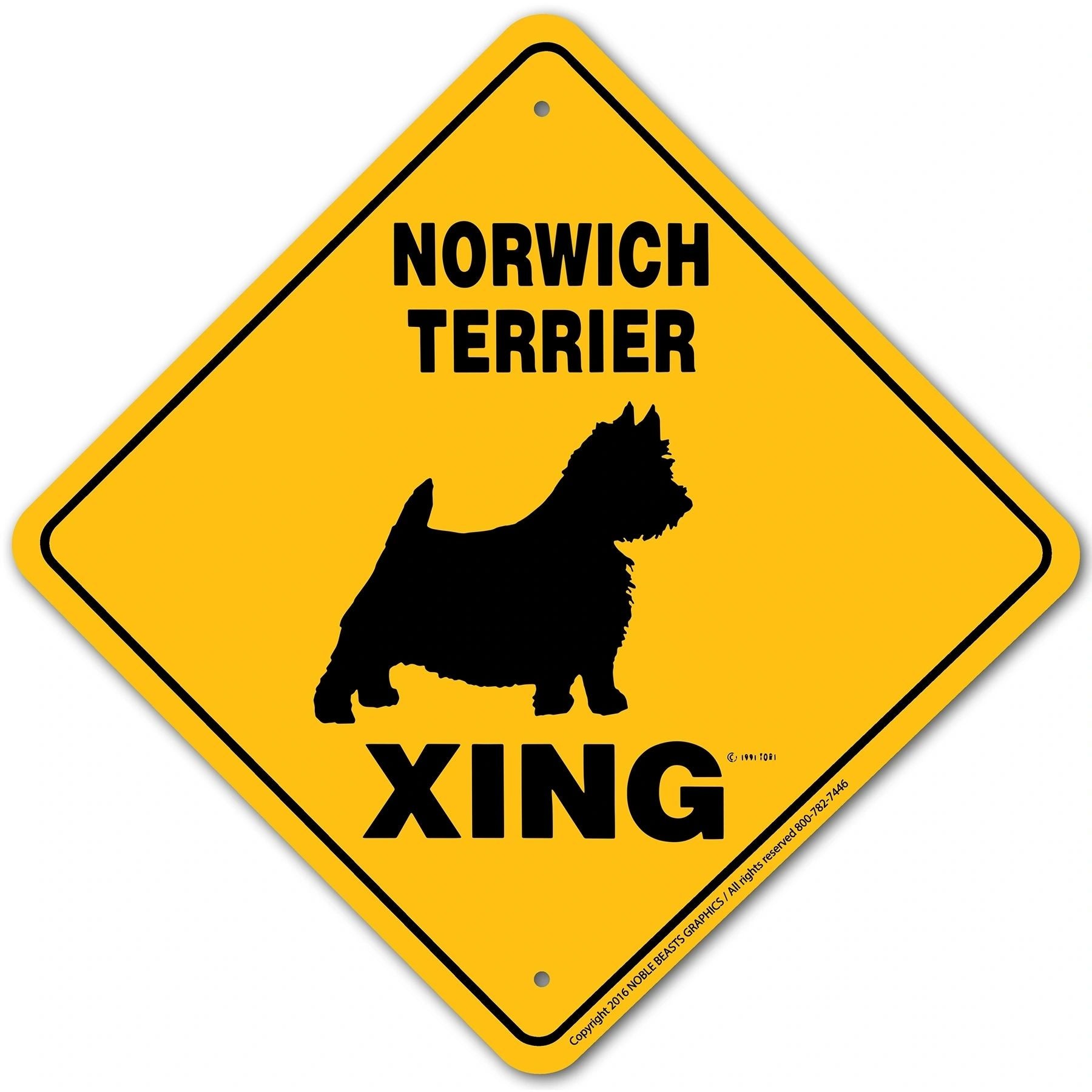 Help keep animals safe and people aware with Noble Beasts Graphics 12 inch x 12 inch Norwich Terrier Xing aluminum sign. This durable sign can be used for both outdoor and indoor use.